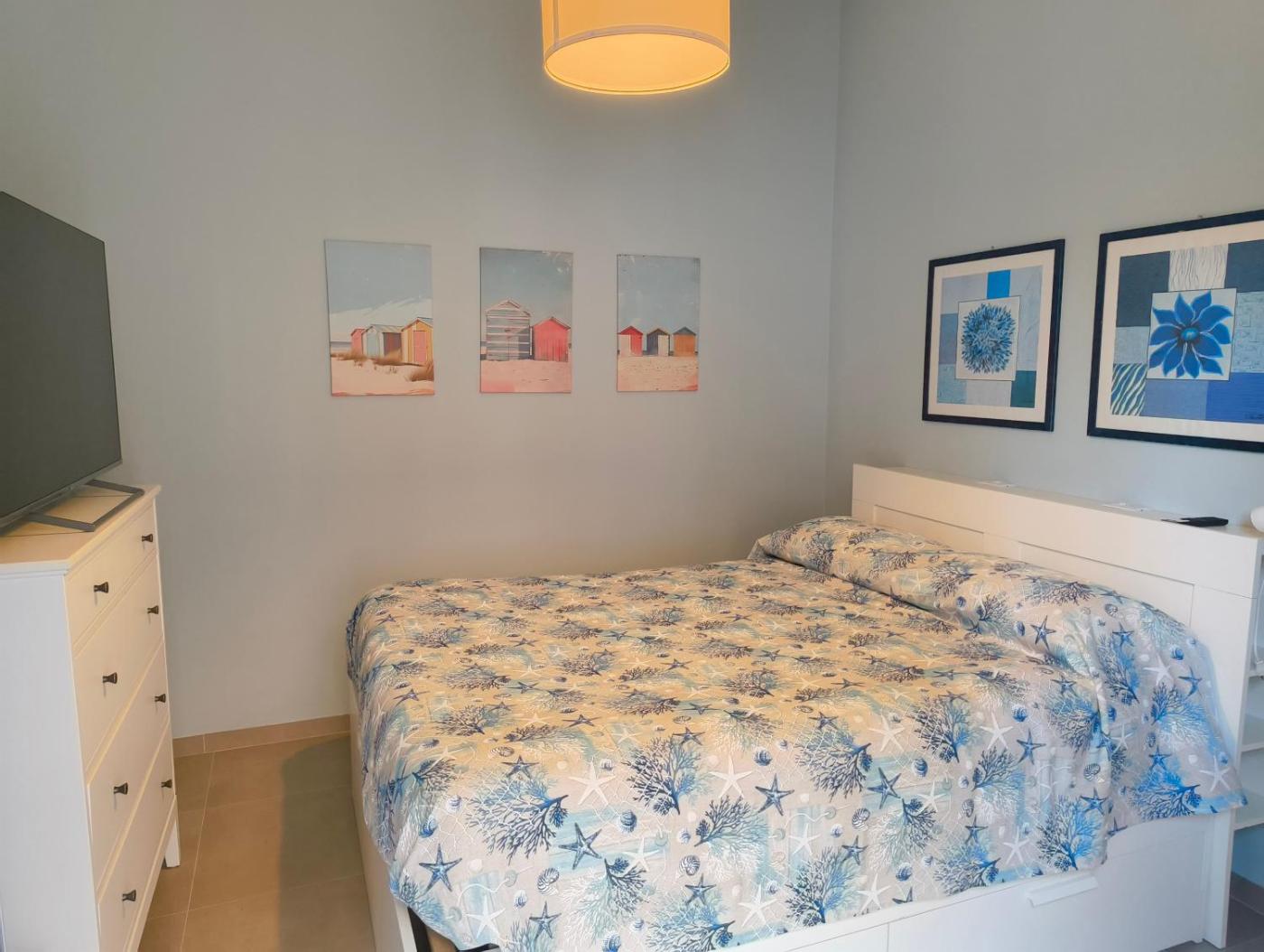 Leading onto a terrace with garden views, the air-conditioned holiday home consists of 1 bedroom and a fully equipped kitchen. A flat-screen TV is featured.